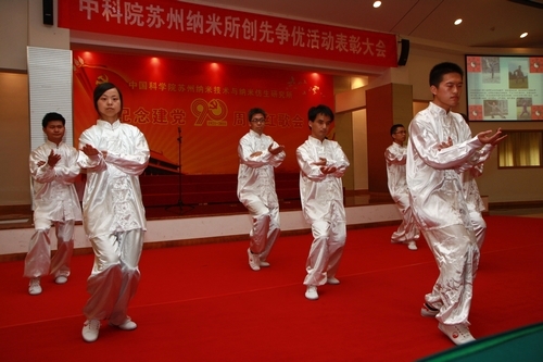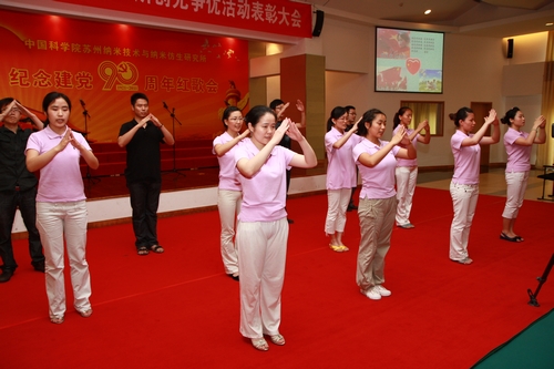90年奋勇拼搏,功绩不朽;90载风雨兼程,事业常新。7月1日,苏州纳米所在教育综合楼报告厅举行创先争优活动表彰大会暨纪念建党90周年“红歌会”。所党委书记、副所长刘佩华,所党委、纪委成员,受表彰的先进基层党组织代表、优秀党员,以及广大党员200余人参加了大会。会议由所党委委员张明杰主持。