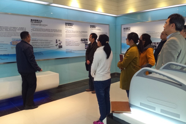 医工所战略规划处处长、检验室第二支部书记董文飞研究员等热情接待了纳米所党员一行,并带领大家参观了医工所展厅,介绍了医工所的建所历史、一三五规划、学科布局、人员团队、转化成果等研究所发展现状。医工所工程化平台建设、技术转化以及特色的医疗器械产品给纳米所党员留下了印象深刻。