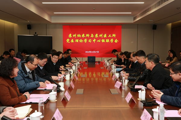 11月27日下午,苏州纳米所与苏州医工所开展党委理论学习中心组联学会,深入学习贯彻党的二十届三中全会精神,持续推动研究所改革,不断提升科研和管理工作水平,增强党建引领创新能力。联学会议由苏州纳米所纪委书记袁艳明主持,双方领导班子成员、党委委员、纪委委员、党支部书记、各部门负责人等近50人参加会议。