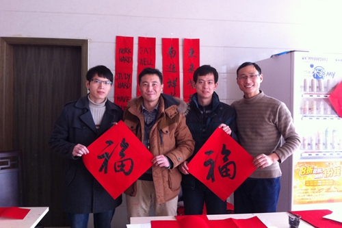 2月4日午时,在我所C座一楼大厅内,主办人员还未摆设好台架和纸张笔墨,就已有师生前往等候。此后,闻讯赶来的师生络绎不绝,他们迫不及待的从主办方提供的春联目录中挑出自己心仪的春联佳句。李涛涛和宋民顺两位书法高手对师生有求必应,把红纸铺满桌面,饱蘸墨汁,大笔一挥,龙飞凤舞,用心地写下一幅幅春联和福字。“宏图大展前途远,吉星高照事业兴”、“五湖四海皆春色,万水千山尽光辉”等春联既抒发了辞旧迎新的喜悦,又饱含着对我所师生的新春祝福。师生们从书法高手手中接过春联,如获至宝,喜悦之情溢于言表,并纷纷在签名表上用毛笔一试身手。在两个多小时的时间里,我们的两位书法高手忙碌得几乎不得片刻休息,热情高涨。一幅幅寓意美好、苍劲有力、散发浓浓墨香而又寓意深刻的春联,映红了我所师生的脸庞,现场充满着欢声笑语和浓浓暖意。