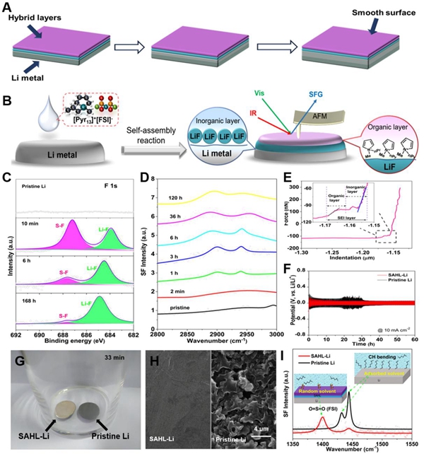 图2. 刚柔相济有序有机/无机复合SEI层设计及抑制锂枝晶生长的效果