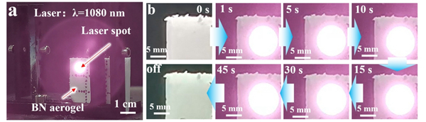 图3. 高能激光辐照在氮化硼气凝胶表面