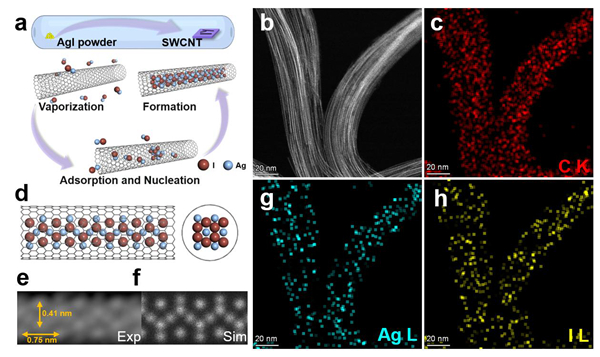 图1. 一维AgI@sSWCNTs vdWHs的合成与结构表征