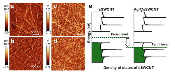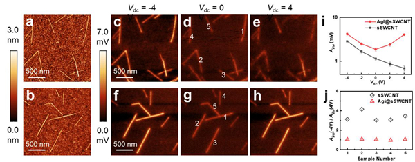 图2. 单个sSWCNT和AgI@sSWCNT的介电力显微测试