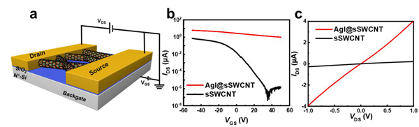 图3. AgI@sSWCNT薄膜器件的结构示意图和测试结果